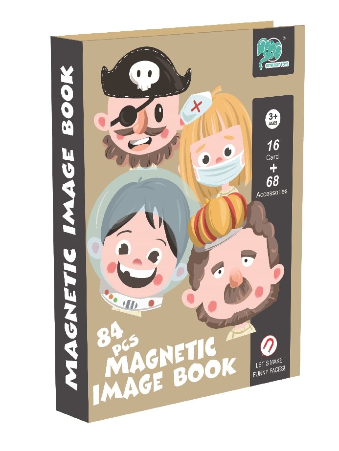 Magnetbog – Ansigter giver børn mulighed for at skabe sjove ansigter og figurer med de 84 magnetiske dele. Sættet indeholder 16 kort og 68 magnetiske tilbehørsdele, der kan kombineres på utallige måder f