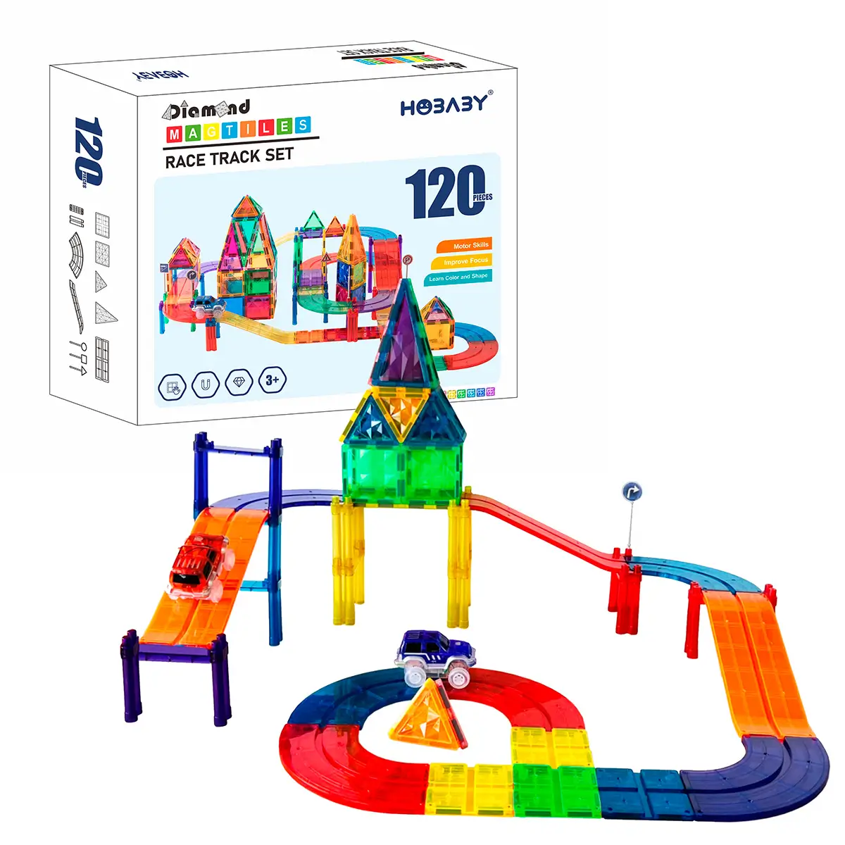 Byg en imponerende og farverig bilbane med Magnetic Tiles Bilbane med 120 dele. De magnetiske tiles gør det nemt at bygge baner, tårne og ramper, hvor bilerne kan ræse afsted. Perfekt til at stimulere barnets fantas