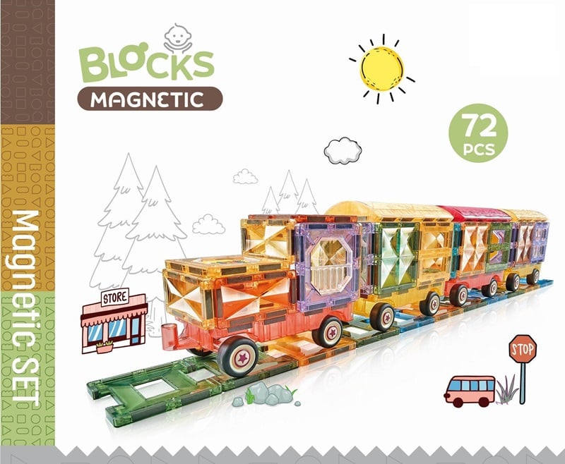 Med 72 farverige dele kan dit barn bygge en fantastisk togbane, der stimulerer både fantasi og motoriske færdigheder. Magnetic Tiles er designet til at være lett