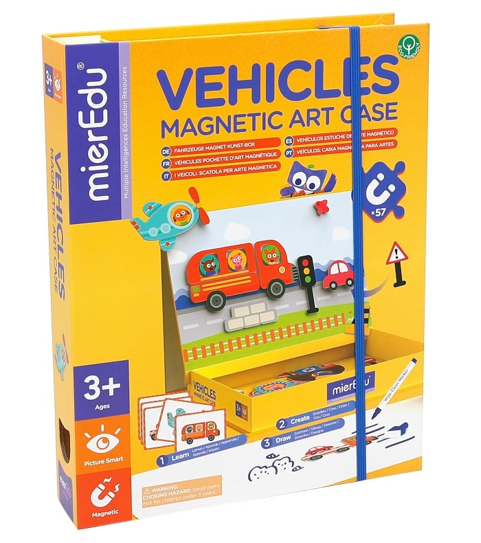 mierEdu Magnetbog – BilerLad børn udfolde deres kreativitet og fantasi med mierEdu Magnetbog – Biler, hvor de kan skabe og designe sjove bilscener med farverige magneter. Magnetbogen hjælper med at styrke barnets finmotorik, form- og farvegenkendelse samt